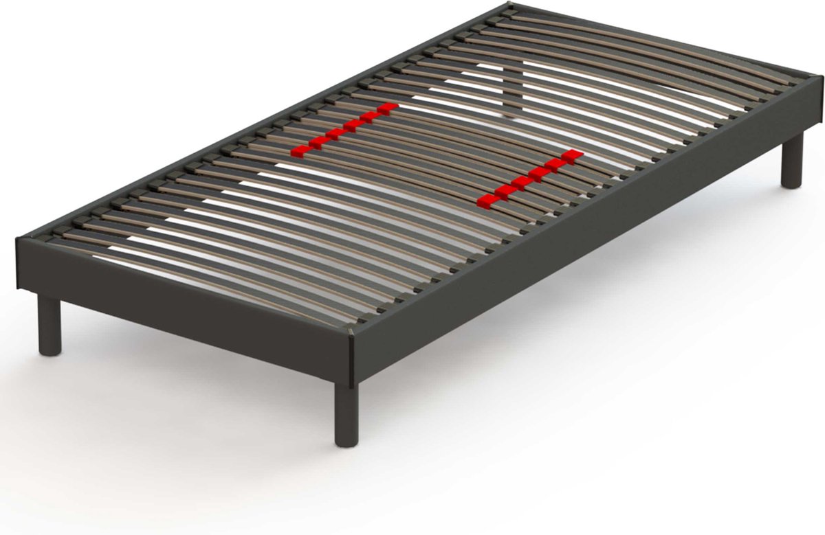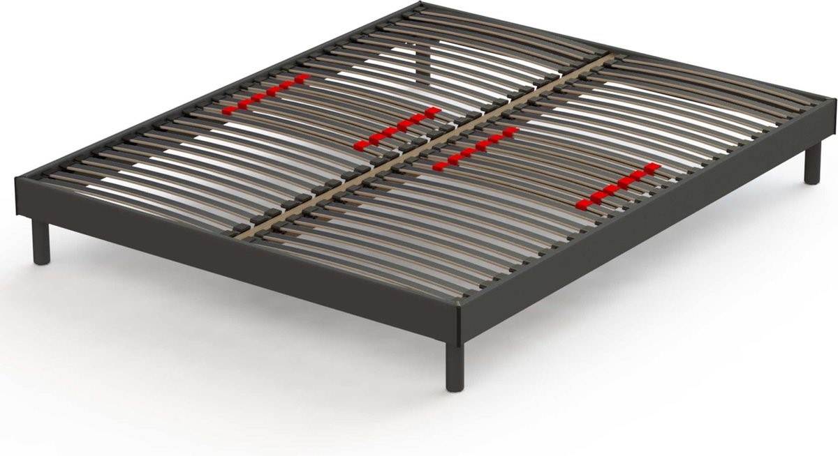 Houten bedkader + lattenbodem met 28 verende latten, instelbare bekkenzone en verende ophanging in rubber. Heel degelijk bed !!!