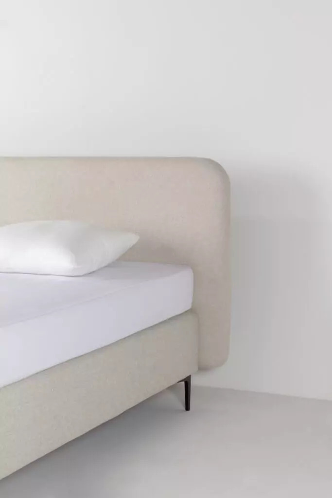 Boxspringset ,,Elegance,, 180x200 heeft een onderstel met comfortveren . 26cm dikte + tijdloze , afgeronde hoofdborder van 6cm dikte . Afgewerkt met een moderne BOUCLE stof in beige . Pootjes naar keuze . Bovenop de boxspring ligt een 7-zone pocketverenmatras . GRATIS 2 kussens , Pliad en hoeslaken !!!