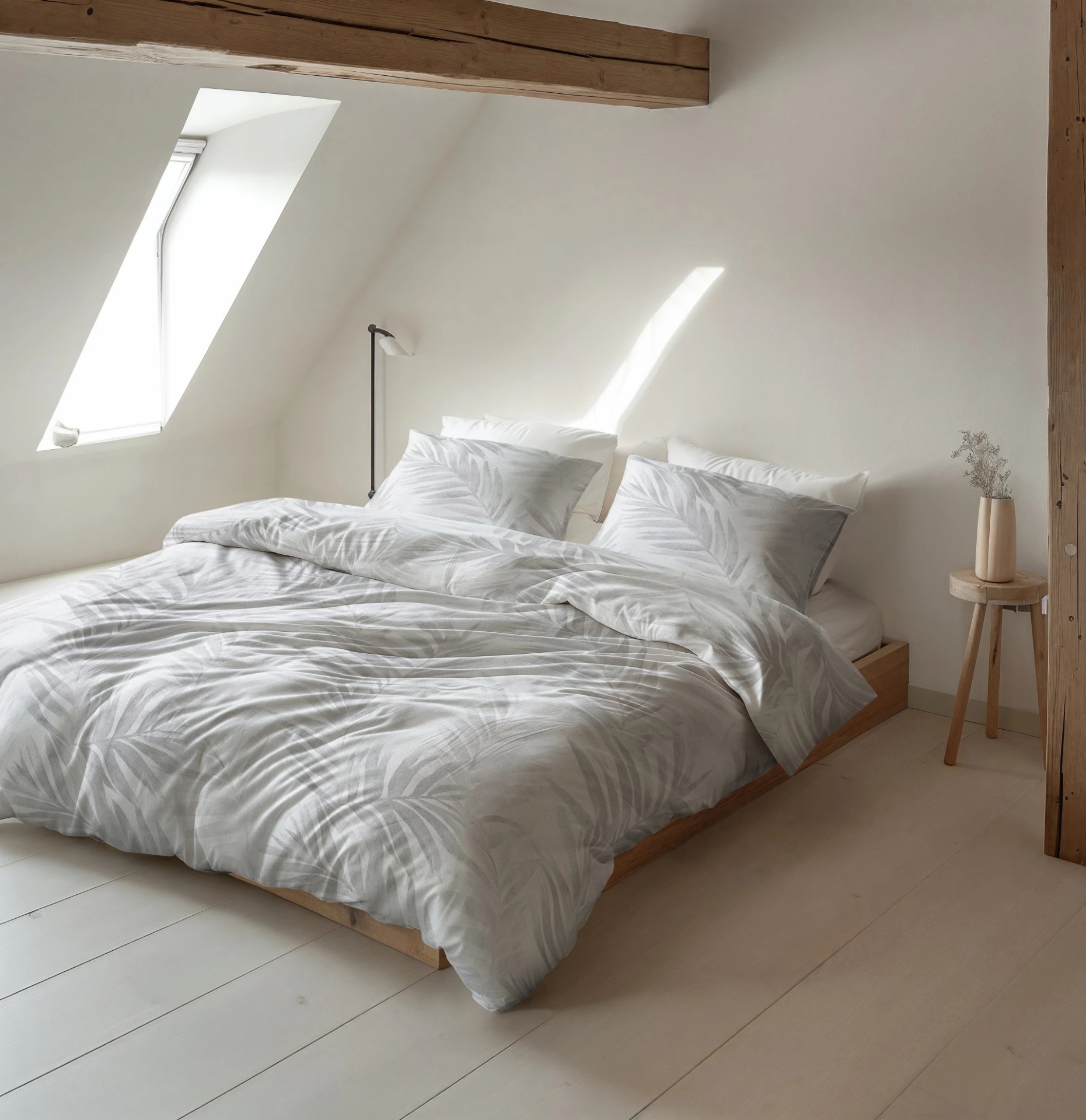 Deze dekbedovertrek is gemaakt van flanel-blended, waardoor hij zacht aanvoelt en strijkvrij is! Rustgevende, tijdloos dessin van groene bladeren op een bleke ondergrond. Slopen inclusief!