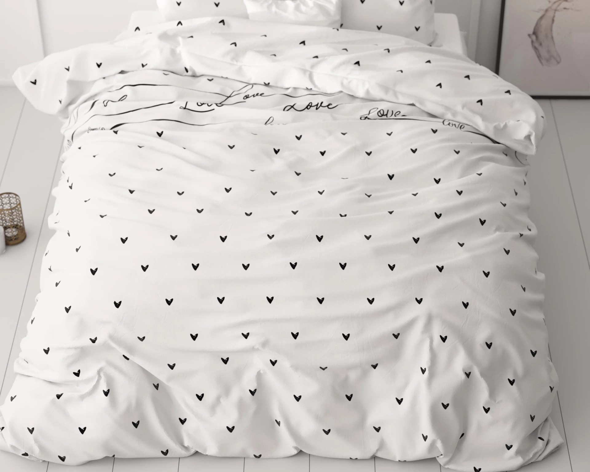 Deze dekbedovertrek is gemaakt van microvezel waardoor zij zacht aanvoelt en strijkvrij is! Dessin van hartjes met tekst op een bleke ondergrond. Slopen inclusief!