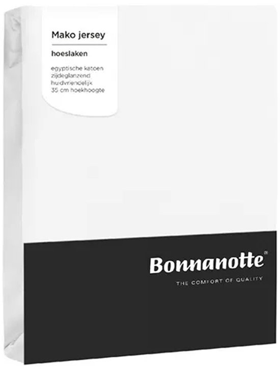 Dit mako jersey hoeslaken van Bonnanotte heeft een fijn elastisch vermogen en sluit strak om je matras zonder plooien. Gemaakt van de meest zachte, fijne en sterke katoen. Mako katoen wordt geproduceerd in het noordelijke deel van Egypte en gesponnen van langstapelige gekamde vezels, met als resultaat de mooiste kwaliteit katoen (155 gr/m²) voelt het hoeslaken stevig, zacht en luxe aan. De gekamde garens van 100% katoen zorgt voor uitstekende ventilatie en optimale vochtopname. Met rondom elastiek voor een perfecte pasvorm.